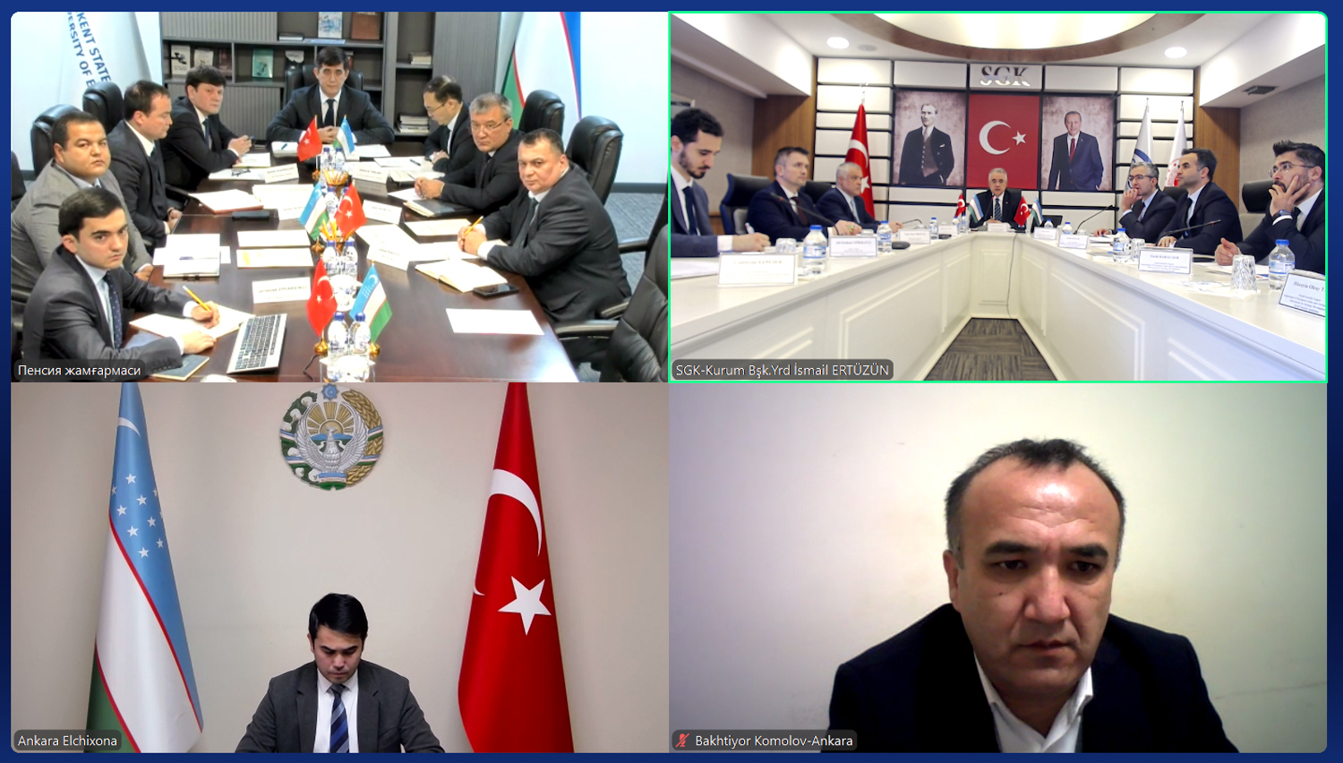 Sosyal Güvenlik Kurumu (SGK) ile Özbekistan Cumhuriyeti Ekonomi ve Maliye Bakanlığı Bütçe Dışı Emeklilik Fonu heyetleri, iki ülke arasındaki sosyal güvenlik süreçlerini geliştirmek amacıyla çevrim içi bir toplantıda bir araya geldi.